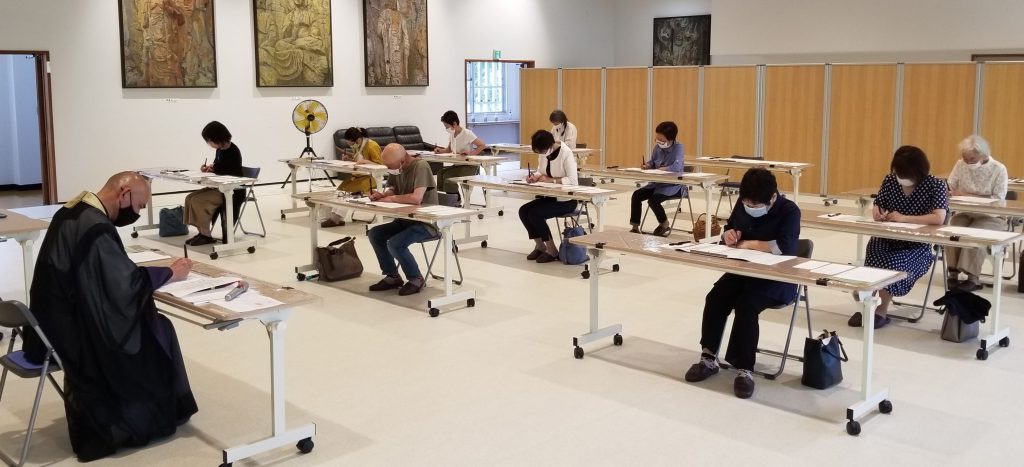 | 2時間 | 本堂参拝10分、法話30分、説明15分、坐禅(座禅)20分×2、写経60分 |
