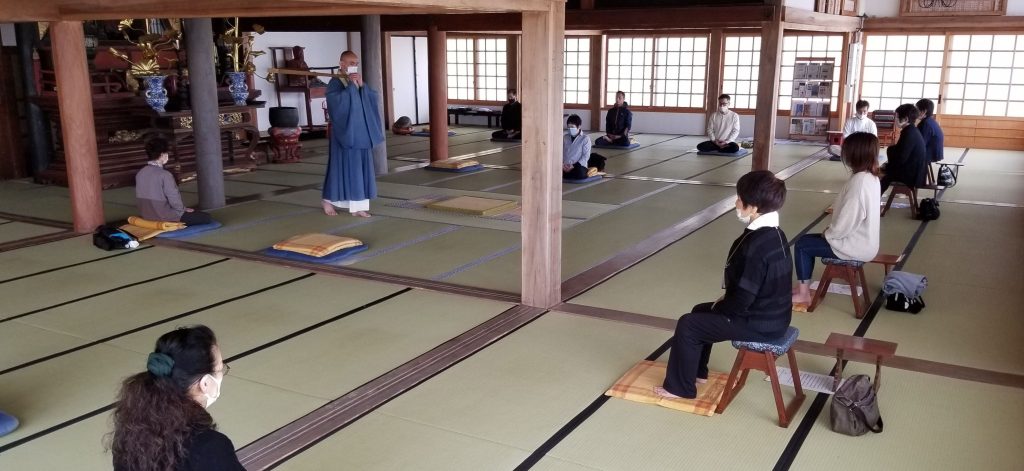 | 1時間 | 本堂参拝3分、説明15分、坐禅(座禅)20分×2回 |